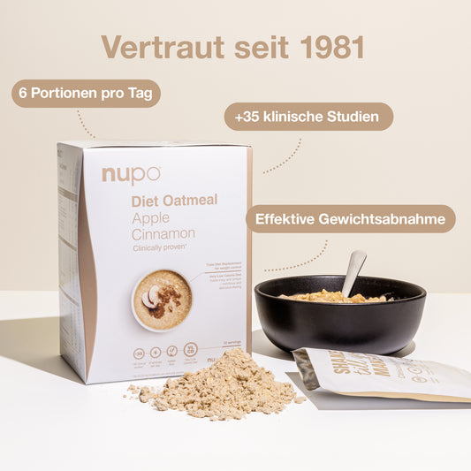 Die Nupo-Diät ist eine schmackhafte und nahrhafte sehr kalorienarme Diät (Very Low Calorie Diet, VLCD), die manchmal auch als Total Diet Replacement (TDR), Suppen- und Shake-Diät oder Formula-Diät bezeichnet wird. Die Nupo VLCD ist ein vollständiger Diät-Ersatz, der speziell für eine einfache, sichere und effiziente Ernährung entwickelt wurde.