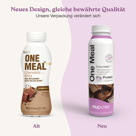 Die Nupo One Meal-Produkte sind Mahlzeitenersatzprodukte, die 1-2 Hauptmahlzeiten ersetzen sollen. Sie enthalten daher alle Nährstoffe, die dein Körper in einer Mahlzeit benötigt.